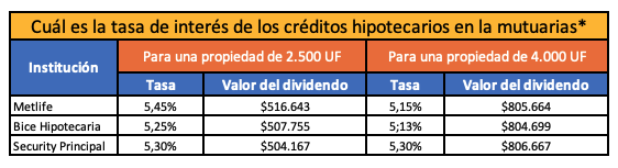 “Las mutuarias trabajan con tasas cercanas a la tasa máxima de interés convencional, que hoy está en 6,33% para operaciones bajo 2.000 UF a financiar (cambian cada 15 días).pero más que enfocarse en la tasa, hay que comparar las cuotas. Muchos bancos ofrecen seguros más caros que las mutuarias (que esta asociadas con aseguradoras) y la diferencia en las cuotas pueden ser de $30.000” destaca Muñoz.